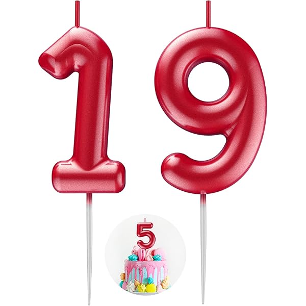 Amazon Com Red 19th Birthday Candle Number 19 Years Old Candles Cake Topper Boy Or Girl Party Decorations Supplies Home Kitchen
